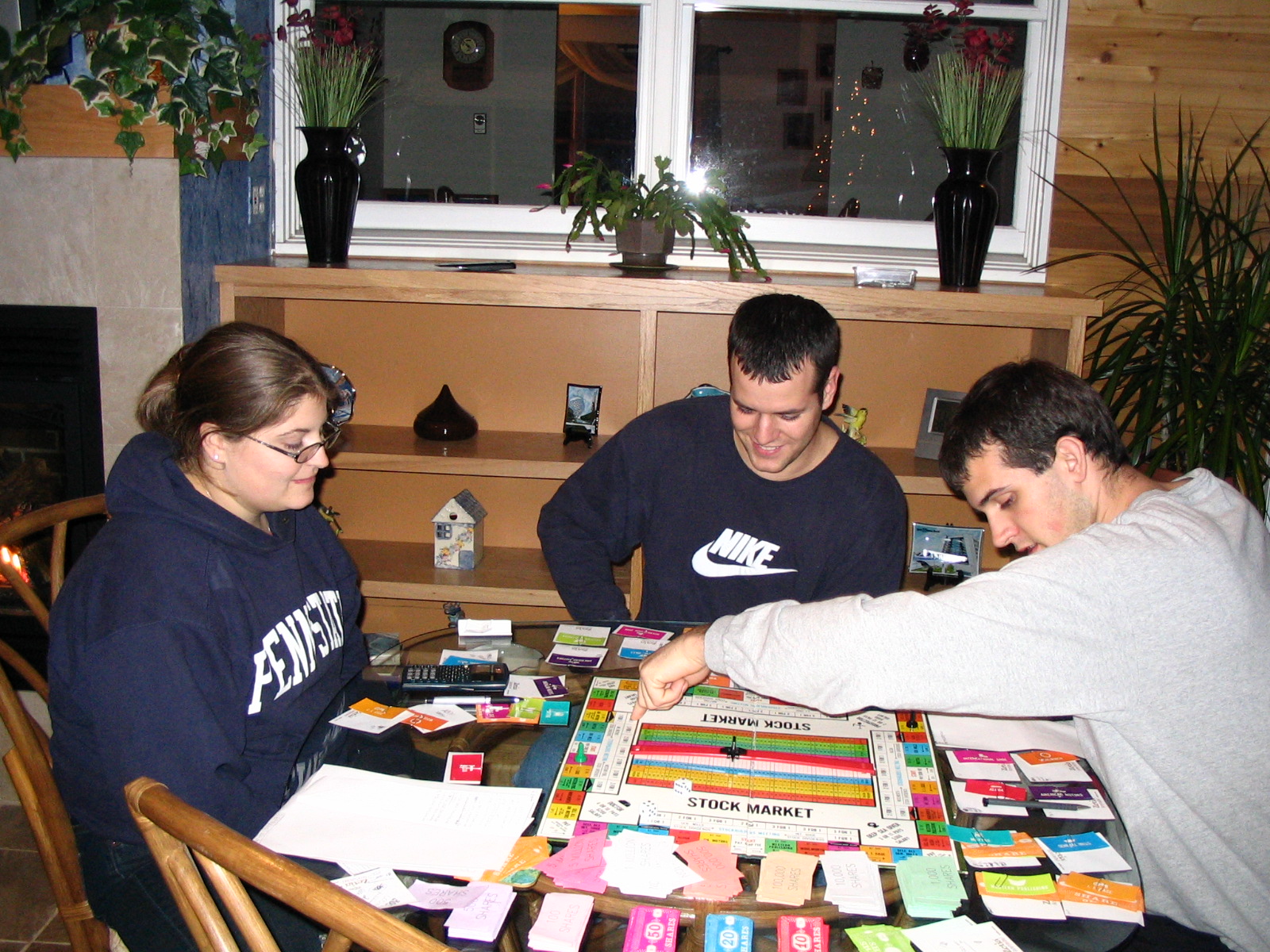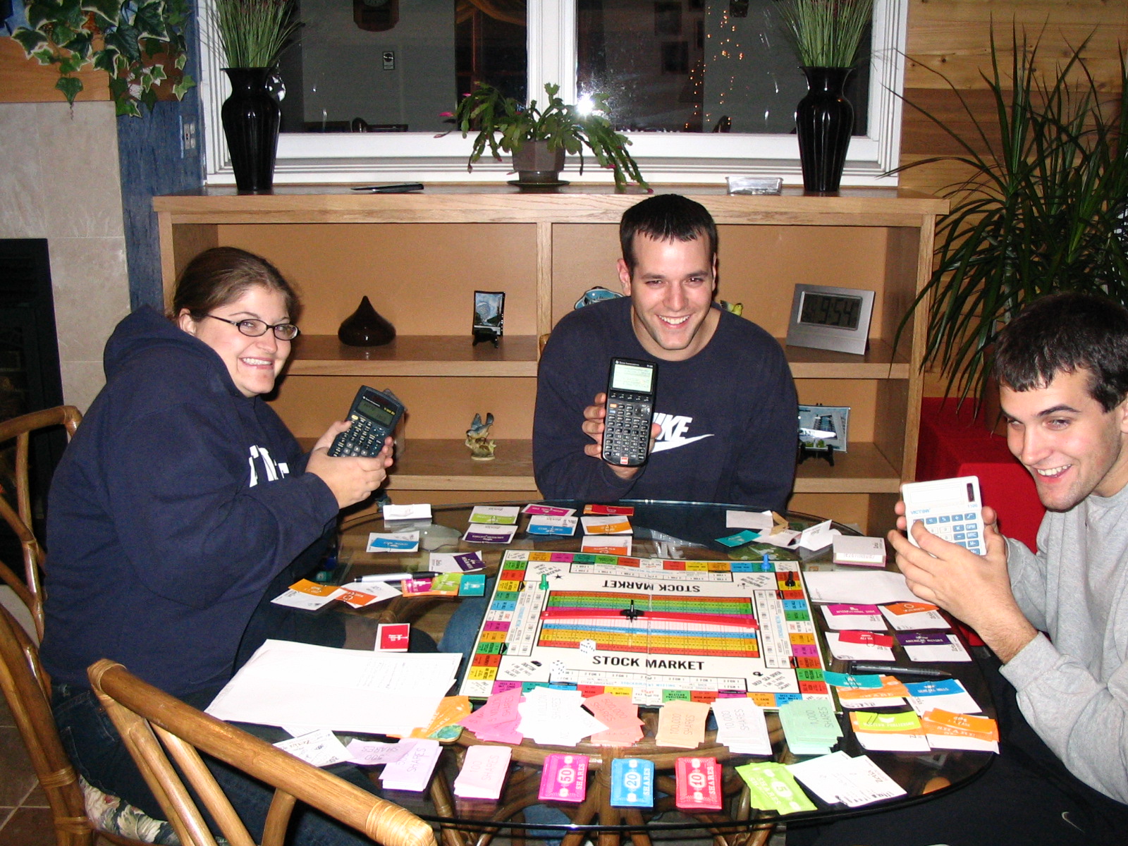 We introduced Brian's brother, Mark, to the Stockmarket Game at Thanksgiving in 2004. He's hooked. :) Click on the photo for a larger verion.
