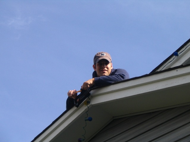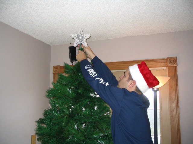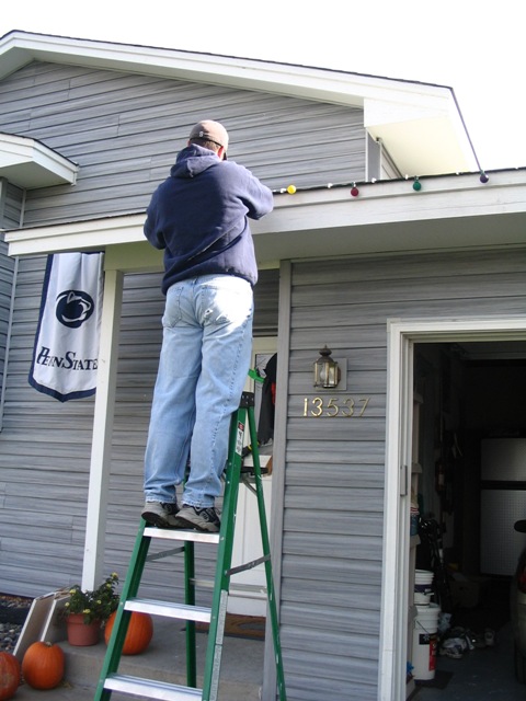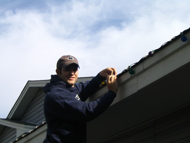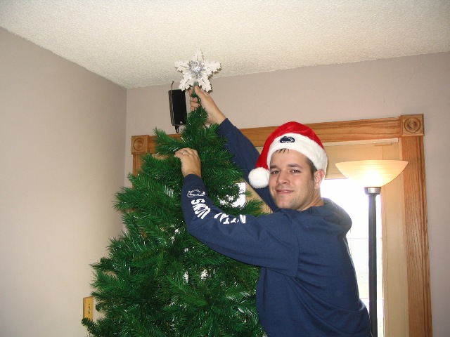 Our first Christmas as a married couple. This year is a Penn State Christmas. Since PSU is going to a bowl game, we have the Penn State Christmas tree, and blue and white lights everywhere. We decorated on Thanksgiving morning, even though I would have done it weeks before. It was great decorating our home together.